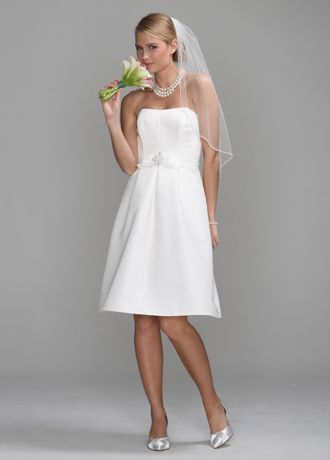 This sassy & chic gown is perfect for any special occassion! Faille dress is knee length with a structured bow at natural waist with crystal brooch. Back zipper. Imported polyester. Dry clean only. Available in ivory or white.