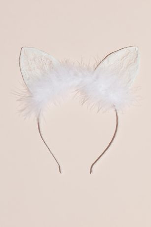 Let's get the bachelorette party started right MEOW. Top your bachelorette party looks with this fun and flirty lacy cat ears headband, accented with feather plumes.