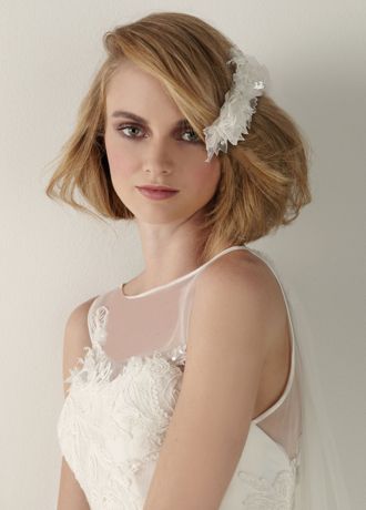 Add something extra with this soft, whimsical floral lace comb with crystals!