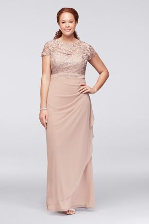 A beautiful mix of textures makes this dress a breathtaking choice for formal affairs. The lace bodice, gathered chiffon skirt and crystal beaded belt ensure you'll be the best dressed guest no matter what.