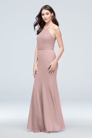 Lace and Stretch Crepe High-Neck Bridesmaid Dress