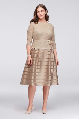 Lace and Striped Organza Plus Size Midi Dress