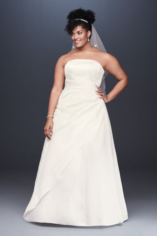 Lace Applique Satin Plus Size A-Line Wedding Dress