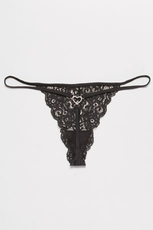 This honeymoon-worthy delicate scalloped lace G-string has a shimmering crystal heart on the back.