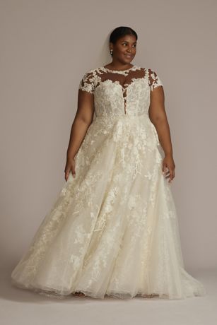 Lace Illusion Cap Sleeve Ball Gown Wedding Dress
