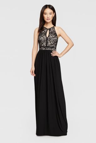 Lace Keyhole Halter Dress with Jersey Skirt