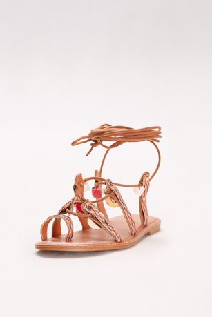 A boho finish to maxi dresses and more, these chic lace-up sandals are topped with colorful charms.