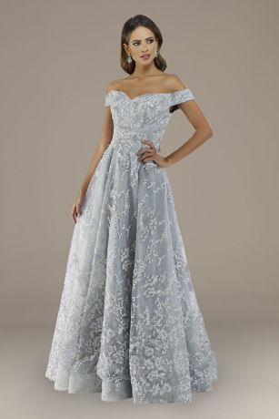 Lara Everly Off-the-Shoulder Lace Ball Gown