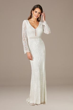 Lara Flora Beaded Long Sleeve Wedding Gown