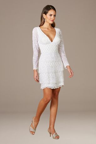 Whether for engagement pics, the Bach Bash, or a casual wedding, you'll stop the show in this beaded mini dress. With long sleeves, a V-neckline, and tiered detailing on the skirt, this little white dress is a guaranteed headturner.