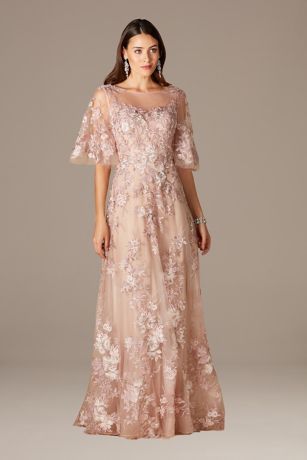 Enchanting sleeves and romantic embroidery make this beautiful A-line gown a perfect choice for any mother of the bride or groom. Intricate floral details resemble the love that blooms from the happy couple!