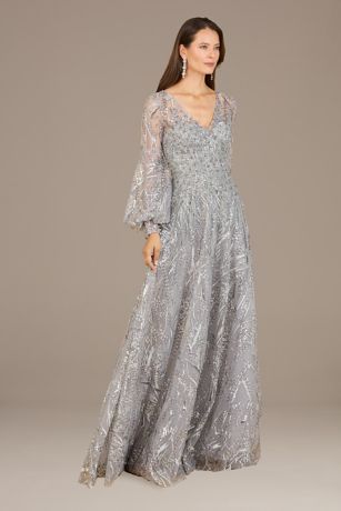 Show the newlyweds just how much you admire them with a romantic look of your own. Perfect for any mother of the bride or groom, this ball gown mixes elegant and modern details. Featuring shining rhinestone embellishments, lace embroidery, and whimsical, sheer long sleeves.