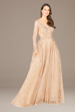 Allover embroidery makes this long-sleeve mother of the bride gown endlessly elegant for the ultimate wedding VIP.