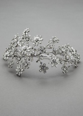 - Opulent headpiece features gorgeous crystal floral accents.