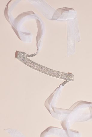 Add a touch of glitzy glam to your gown with this belt, featuring two simple bands of rhinestones outlining an intricate crystal zig-zag pattern.