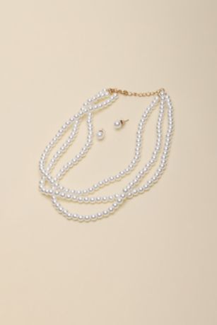This layered pearl choker adds instant polish with a three-strand look, paired perfectly with matching pearl earrings. A fresh take on a classic favorite that elevates bridal, bridesmaid, or special occasion styles with effortless elegance.