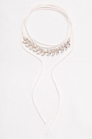 Finished with leafy crystals, this slim wrap choker is an on-trend adornment.
