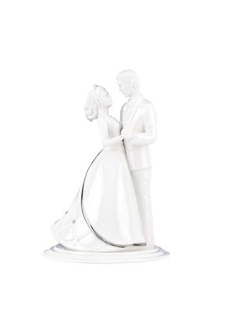 Sure to become a cherished wedding keepsake, the Bliss Cake Topper is a couple dancing their first dance as husband and wife. This cake topper is beautifully cast in fine white porcelain and trimmed with precious platinum. The groom is attired in a handsome tuxedo and the bride wears a stunning wedding gown accented with sparkling crystals.