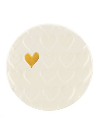 Inspire the warmth of love and friendship with the Gold Rush Heart small dish. Elegantly crafted of glazed ivory porcelain, this unique dish is carved with hearts with one heart hand decorated in burnished gold. A wonderful gift for a special someone.