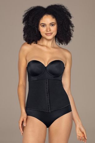 Sculpt your curves with this shaping waist cincher, made from compressive PowerSlim fabric with soft lining for all-day comfort. This torso-length design is equipped with boning and a three-level adjustable hook-and-eye closure at the front for the perfect fit that stays put, every time.