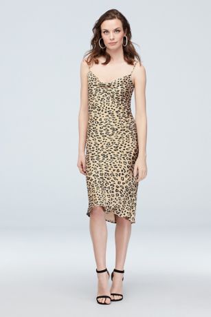 You know what they say, leopard is the new neutral! This sleek and slinky cowl neck slip dress hits mid-calf, perfect for showing off a dramatic statement shoe.