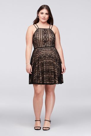 Linear Lace Fit-and-Flare Dress with Double Straps