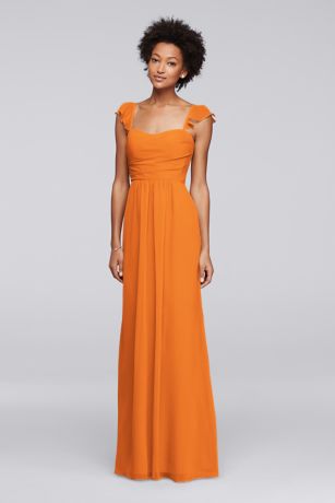 Long Bridesmaid Dress with Flutter Cap Sleeves