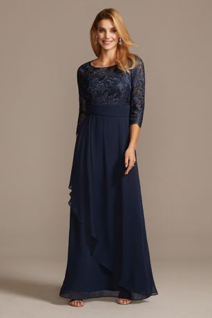 Long Chiffon A-Line Dress with Embroidered Bodice