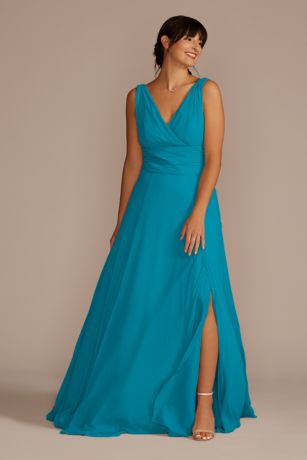Long Chiffon Surplice Tank Bridesmaid Dress