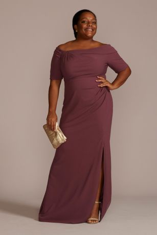 Long Crepe Off the Shoulder Sheath with Skirt Slit
