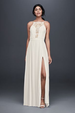 This long, stretch-viscose dress features richly textured lace for a chic twist on the illusion neckline. The high slit has Hollywood red carpet written all over it.