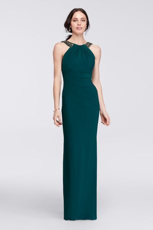Long Halter Dress with Beaded Neckline