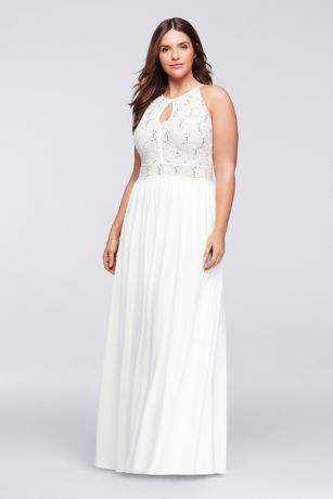 Long Halter Dress with Glitter Lace Bodice