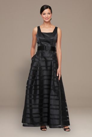 Elegance meets timeless charm in this long burnout organza A-line dress, featuring a flowing silhouette and a cinched belt for a flattering fit. Perfect for mothers of the bride or groom, this dress exudes sophistication for the special day.