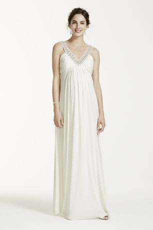 This gorgeous jersey beaded dress is comfortable but will not sacrifice style on your special day!