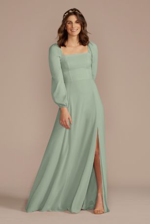 This long-sleeve chiffon bridesmaid dress gives off boho vibes. Elastic bands at the shoulders let you switch to an off-the-shoulder look.