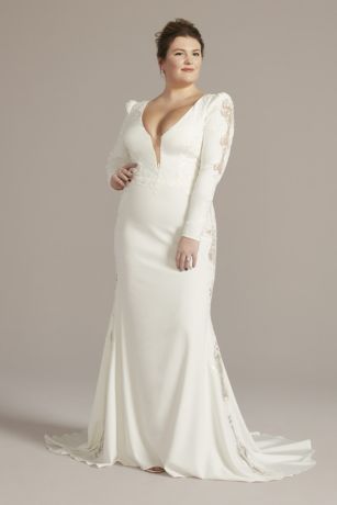 Long Sleeve Crepe Mermaid Gown with Illusion Sides