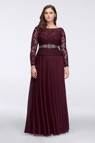 The floaty chiffon A-line skirt of this lace-bodice dress sways from ceremony to dance floor without missing a beat, while a beaded belt brings the shimmer.