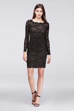 Long-Sleeve Scalloped Lace Cocktail Dress