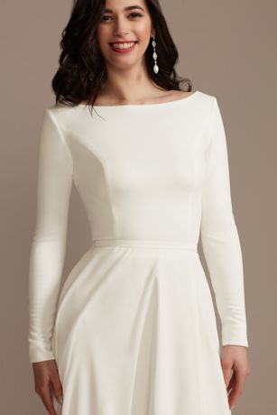 Wear this versatile long-sleeve top on your wedding day and beyond. The scuba crepe fabric ensures a comfortable fit, while buttons at the V-back and sleeve cuffs add elegant details.