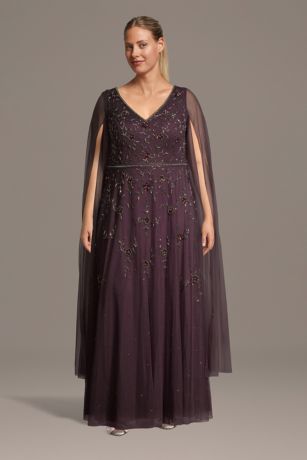 Elegant beading and a flattering V-neck combine with sheer long sleeves to create a timeless gown perfect for the mother of the bride or groom. Graceful, sophisticated, and made to shine.