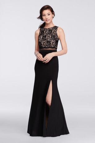 Not ready to wear a full-on crop top? This long dress with a lace bodice is the perfect in-between thanks to the illusion midsection that reveals just a hint of skin.