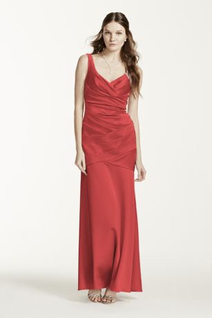 - Sleeveless v-neck dress with stretch satin pleated bodice.