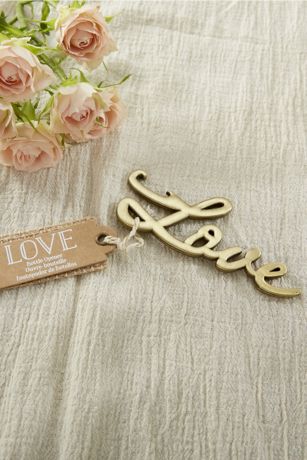 You'll love how our artisans have discretely and beautifully incorporated a bottle opener into the word Love. It truly is the perfect party favor wherever people are gathered in its name. Romantic script spells the word Love in metal with a shining, chrome finish.