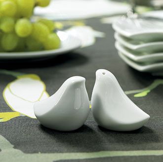 These chic Love Birds are truly engaging. Finely crafted in white porcelain, these modern and romantic salt and pepper shakers make adorable favors for weddings, and bridal showers. These Love Birds come exquisitly packaged in a pullout box that features the two Love Birds comfortably nesting inside. Die cut openings in the box cover allows a small peek into the interior. Measures 1.5".