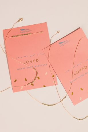 Spread positivity and compassion to your family, friends, or bridal party. This dainty necklace spells out "loved" in morse code using 14k gold-dipped beads on a silky cord.