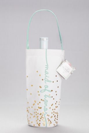What better way to thank your maid of honor than over a glass of wine? This printed canvas wine tote features her title in cursive script with a sprinkling of gold dots.