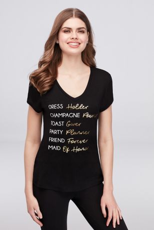 This V-neck tee cheekily outlines the maid of honor's duties, from champagne pourer to friend forever. Perfect for wearing at the bachelorette party or getting ready before the big day.