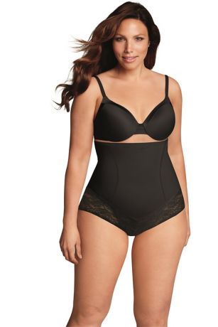 Designed specifically for curvy figures, this firm-control, high-waist brief is made of lace that moves with you for a flexible fit and power-mesh lining for tummy smoothing. Featuring a plush waistband and a shaping rear seam.
