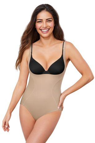 Ideal for body-hugging cocktail dresses and gowns, this brief bodysuit helps shape your tummy, waist, and back for a smooth, sexy look. The open bust allows you to wear your favorite bra underneath.